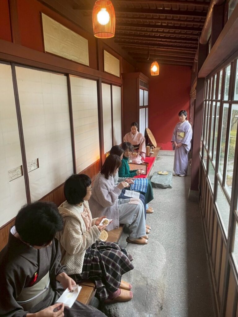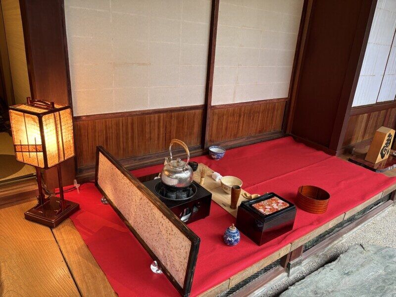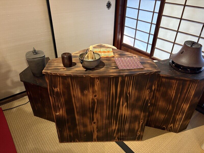 本席 茶箱 月点前 お茶碗:珠洲焼 林 春香作 主菓子:栗金団(吉はし製)
